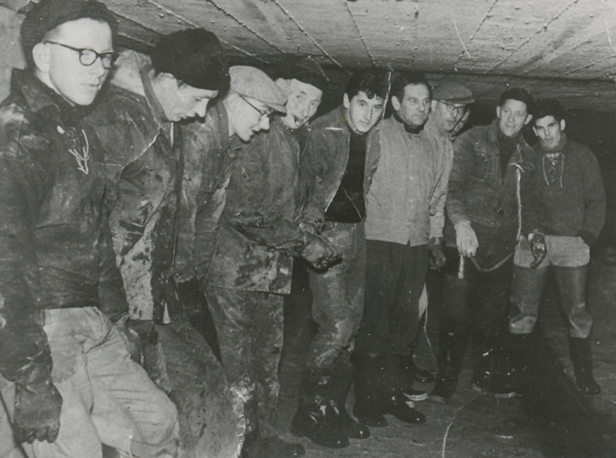 Kenni øll andlitini men bara nøkur nøvn. Frá vinstru Leon Andreassen (1945-2001), Dánjal Niclas Niclasen (1929-2010), nummar fimm Luddi Dam Jacobsen (1938-1986) og næst uttast Hans Petur Brekkstein (1926-2009) Teir leggja betongdekk á Havnará. Myndin frá umleið 1960, og onkur kann siga okkum, hvørjir hini menninir eru.