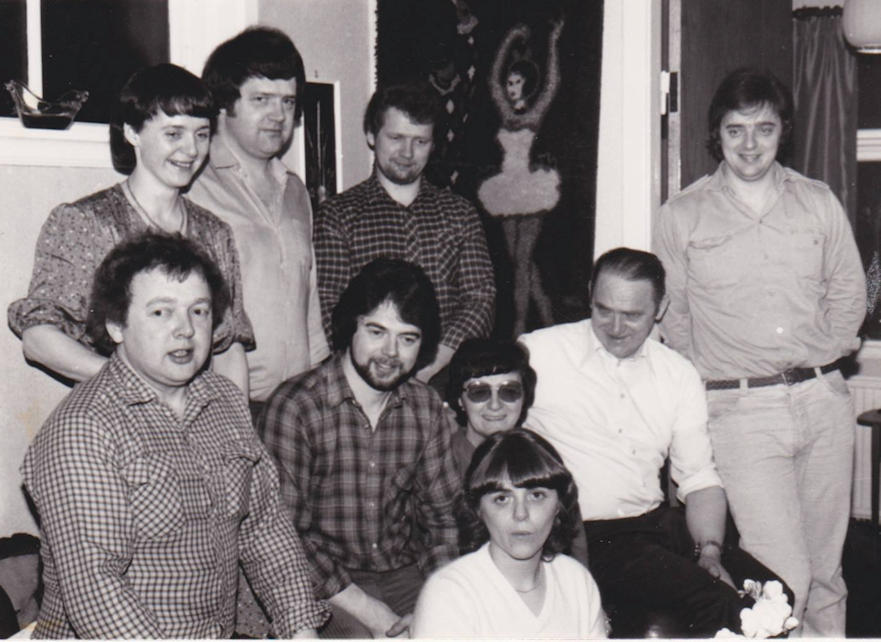 Nú eru vit í 1970 – árunum, og børnini er vorðin vaksin. Standandi frá vinstru: Anna, Per, Echardt og Manne. Fremst frá vinstru Karl, Poli, Mary og Børge. Elin fremst í myndini.