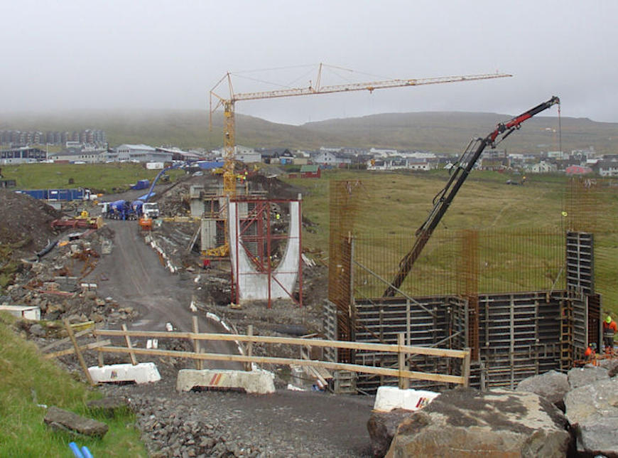 Kom fram á myndina, sum eg tók 3. juni 2015. Minnist, at verkfrøðingur, sum kendi til málið um brúnna um Sandá, segði mær tá, at ikki verður koyrandi um brúnna á ólavsøku sum ætlað. Heldur nærkast vit jólum, áðrenn arbeiðið er liðugt. Arbeiðið var seinkið fleiri ferðir. Á myndini stoypa teir stóru stútturnar, og sum myndin sýnir frá vegnum á Argjum, er høgt úr ánni og upp á koyribreytina. Eisini koyrdu nógvir bilar við gróti og mold til tess at gera vegastubbarnar til brúnna. Arbeiðið at gera frálíku rundkoyringarnar gekk strálandi. Stórur er jarðarmunurin, og heilt nógv tilfar skuldi koyrast. Har á leiðina komu kollveltandi broytingar, tá brúgvin var liðug, tí tá fekk Argir samband við vestara ringveg.