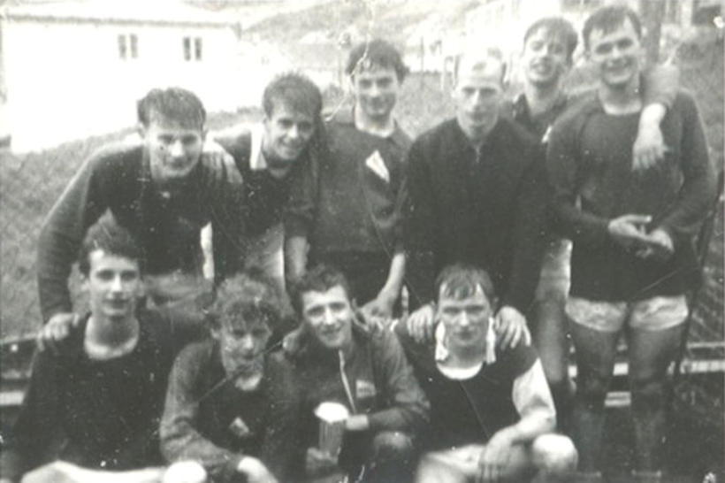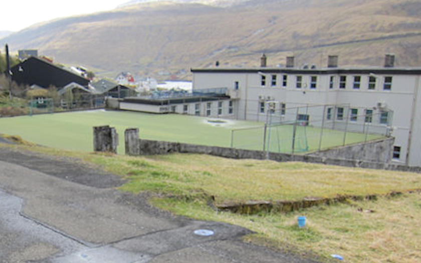 Tað var á uttanduravøllinum í Vestmanna, vit fyrstu ferð hittu Sverra Durhuus. Tá var vøllurin grúsvøllur, sum seinni var asfalteraður. Her er graslíki lagt á vøllin. Vit skiftu í skúlanum, ja, har var eisini svimjihylur. Nógvir áskoðarar stóðu uppi á bakkanum vinstrumegin, sum vit ikki síggja á myndini. Bara góð minnni úr Vestmanna. (Mynd Vagnur)