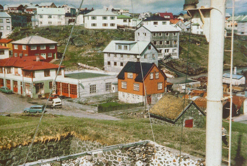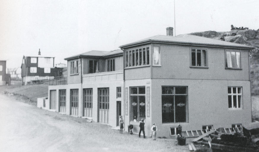 Soleiðs sá út hjá Vilheilmi Nielsen, tá eg arbeiddi har frá 1967-1974. Í uppíbygningunum vóru mest lastbilar umvældir. (Mynd Bergur Jensen)
