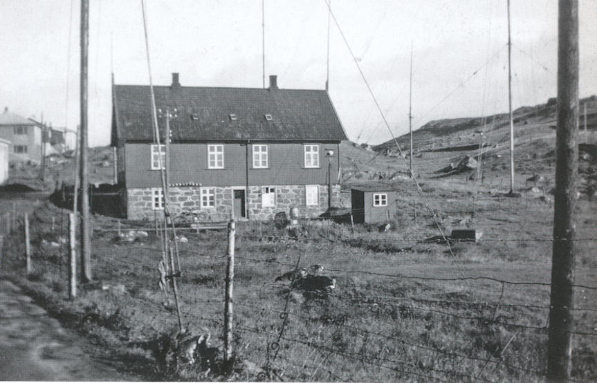 Minnist væl telefgrafstøðina, sum vat tikin í nýtslu í 1917 og var tikin niður, tá nýggja støð var bygd. Meinigheitshúsið stendur nú har gamla Telegrafstøðin stóð við nógu antennunum. (Mynd Havnin fólk og yrki)