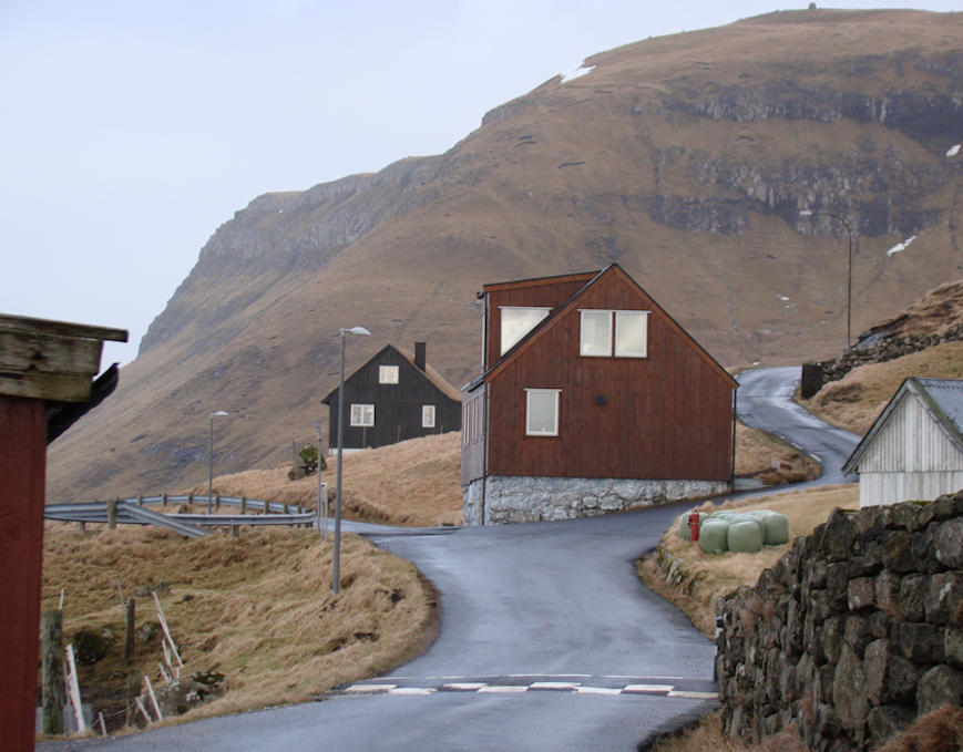 Var á Velbaðstað mikumorgunin og hugleiddi eina løtu. Tók mynd av vegakervinum, sum slett ikki lýkur vanlig ferðslukrøv til stórt virksemi við Fossdalsgjógv. Nógvastaðni, sum myndin vísir, eru smalir vegir, har bilar ikki kunnu møtast, ei heldur er gongubreyt. Undanfarna býráðssamgongan gjørdi ikki sítt heimaarbeiði, tá tey ætlaðu at gera nýggja byggisamtykt í Fossdali. Púra vitleyst at oyðaleggja eitt av vakrasta náttúruøkjum í Suðurstreymoy. Nú er at lurta eftir mótmælunum og bóndunum í økinum.