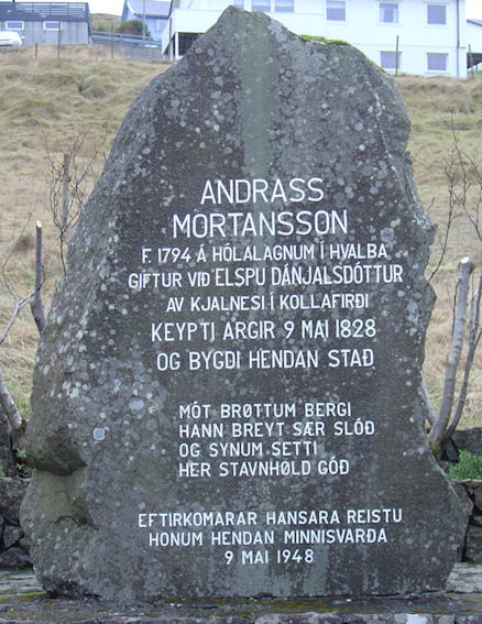 Tað man tí valla vera skeivt at siga, at hvalbingurin Andrass Mortansson, ið keypti Argir fyri nú 185 árum síðani, var hin fyrsti frælsi búreisingurin á Argjum, sum søgan veit um at siga. Tí við keypi hansara av hospitalinum og lutum tess loystust umsíðir lunnindi úr hafti, sum randaðu allar fortreytir fyri stovnseting av einum sonnum bygdasamfelagi, skrivar Hans Jacob Sigvardsen, sálini, millum annað í bókini Argir frá 1978. Tað vil siga, at Argir nú er 185 ára gomul sum bygda/býarasamfelag.