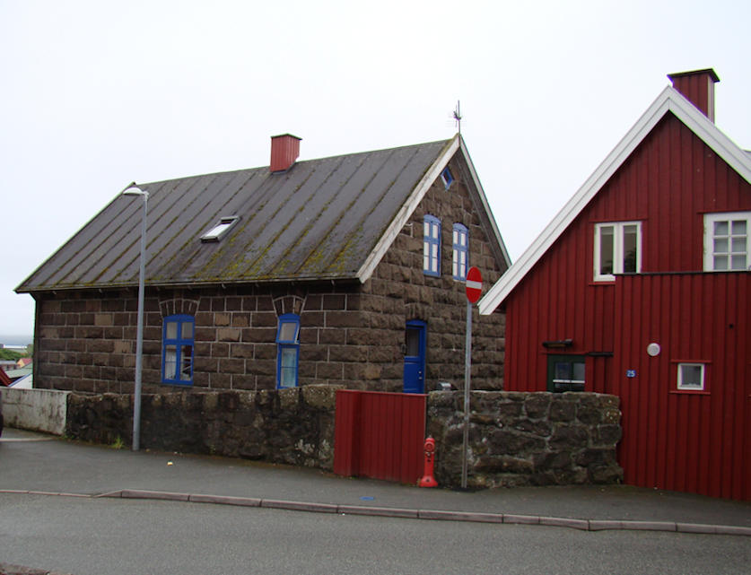 Húsini hjá Nemusi og Rúnu er frá 1901, tað vil siga 120 ára gomul. Sigmund Arge og teir bygdu nú søguligu húsini. Frú Beier búði í húsunum. (Mynd Vagnur)