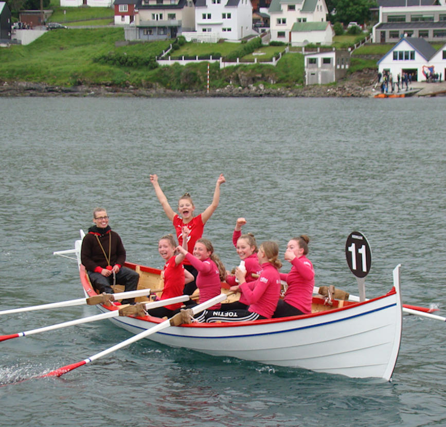 Róðrarmynd sum veruliga vil nakað. Sævarmoy við gentum hevur júst vunnið barnaróðurin í Miðvági. (Mynd Hvannrók)