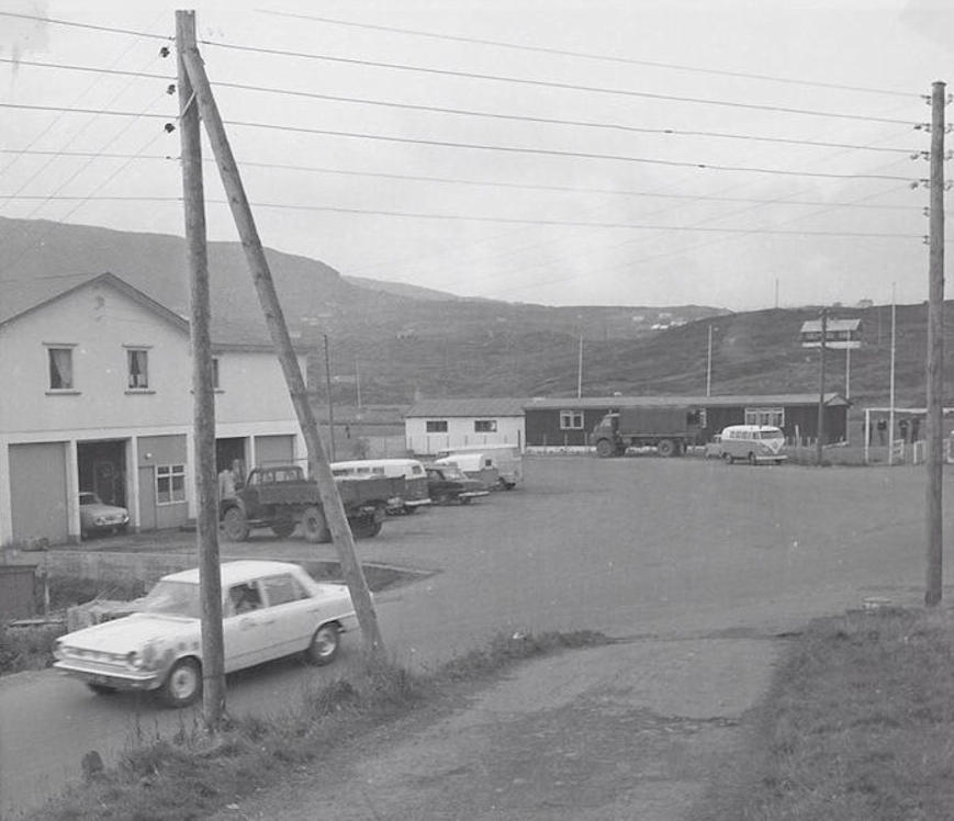Bilarnir á myndini er søga fyri seg. Tildømis vóru í 1970 bara um 3800 akfør í Føroyum, nú er talið um 30.000 akfør. Serliga leggi eg merki til Bedford lastbilin við snúta framman fyri bilverkstaðin. Henda bilin havi eg óivað arbeitt uppá, tá eg lærdi til bilmekanikara hjá Vilhelmi Nielsen. Vilhelm Nielsen umboðaði Bedford í Føroyum. Ja, so eru tvey Volkavogn “rugbreyð” á myndini, og reyvin í einum Taunus bili stingur út úr verkstaðnum.