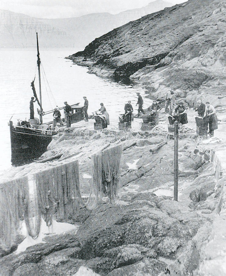 Nógvir menn fóru umborð á sluppurnar á Suðurlandið um várið, hildu á um summarið og vóru heima um veturin. Teir róðu eisini út við árabátum og seldi fiskin í Klaksvík og Fuglafirði. Kvinnur vaskaðu eisini saltfisk, sum kom úr Klaksvík og Fuglafirði til bygdina at reinsa og vaska, sum mynd í bókini sum væl boðar frá.Tær kókaðu eisini livrar í lýsipotti at selja av bygdini.
