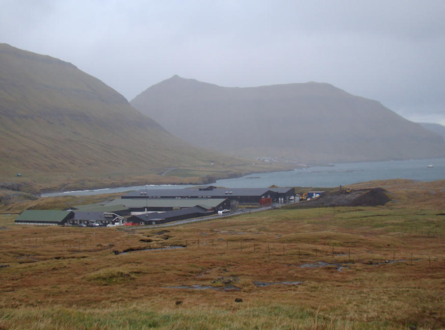 Sýnist at vera stórt virksemi á smoltstøð á Havnarbø. Eisini nógvir aliringar at síggja á fjørðinum (Mynd Vagnur)