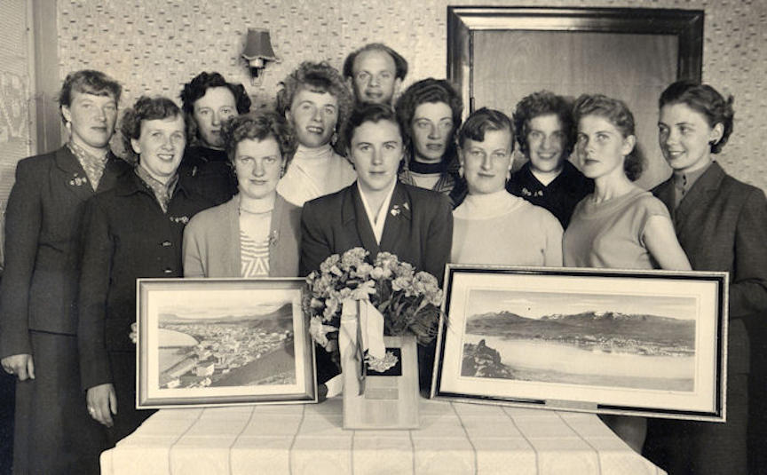 Søljan vinnur FM-steypið til ognar í 196o. St.f.v: Jana Haraldsen, Ása Petersen, Ásvør Heinesen og Erla Olsen. Fremst fr.v: Jenny Simonsen, Sylvia Djurhuus og Hildibjørg Henriksen. (Myndaeigari: Sylvia.