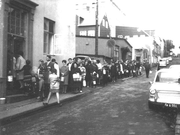 Tá eg sá mynd á Facebook, tá fólk við mjólkarspann í hond stóðu í langari bíðurøð Tórsgøtu og bíðaðu eftir at keypa mjólk, reikaðu tankarnir. Vit beiggjar skiftist um at fara av Landavegnum heim í Tórsgøtu at keypa mjólk. Seinni kom mjólkarbilur út í Grønland, har tú kundi keypa mjólkina. Minnist, at ein litur av mjólk kostaði 90 oyru, og vit fingu hvørja ferð eina tvey krónu frá mammu og spann í hondina. Tveir litrar av mjólk kostaðu 1,80 krónur, og tí lupu tjúgu oyru av, og fyri tey keypti eg lakresstengur í kioskini í Kondradsbrekku, har Eiler Dam og systkini seldu frá lúkuni. ( Skrivað í 2016)