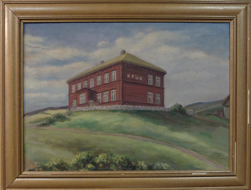 Síggi eisini, at tað eydnaðist at leggja vatn inn í niðaru hæddina, sum tey fingu frá lítlari á á trøðni. Hósdagin var eg í KFUK húsunum, og skjótt gjørdist mær greitt, at húsini vóru alt ov stór at búgva í hjá konslinum, konuni, tveimum børnum og tveimum arbeiðskonum. Lítla løtan í KFUK hósdagin skuldi gera áhugaverd, tí í stovuni sótu eldri kvinnur og hugnaðu sær. Blíðar og áhugaverdar at práta við. Nakað av tí gamla er varðveitt, tí vakrir bjálkar undir loftinum síggjast nógvastaðni. Høgt til loftið og stór rúm, má sigast. Áhugavert eisini at síggja stóra málningin á bróstinum, sum listamálarin Jógvan Waagstein lat KFUK vígsludagin í 1922.