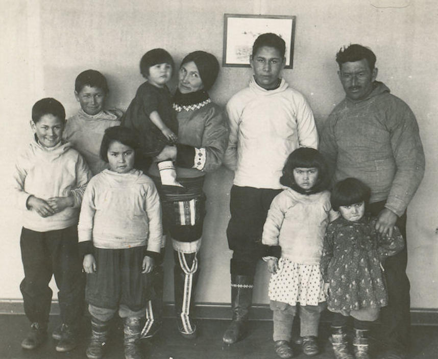 Jógvan var í Grønlandi í fýra ár og koma at fáa nært samband við familjuna á myndini. Húsbóndin æt Abel, sum eisini var bóndi og nærmasti granni. Abel og konan Hanne áttu fimtan børn. Eitt skifti í aldrinum eitt til tvey og tjúgu ár. (Myndaeigari Margit)