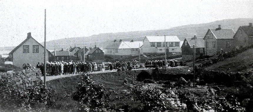 Skamt frá Realskúlanum vígdur í 1916 sæst fimleikahøllin, sum mátti dvína fyri nýggjum stórum kommunuskúla. (Mynd: Havnin – fólk og) yrki)
