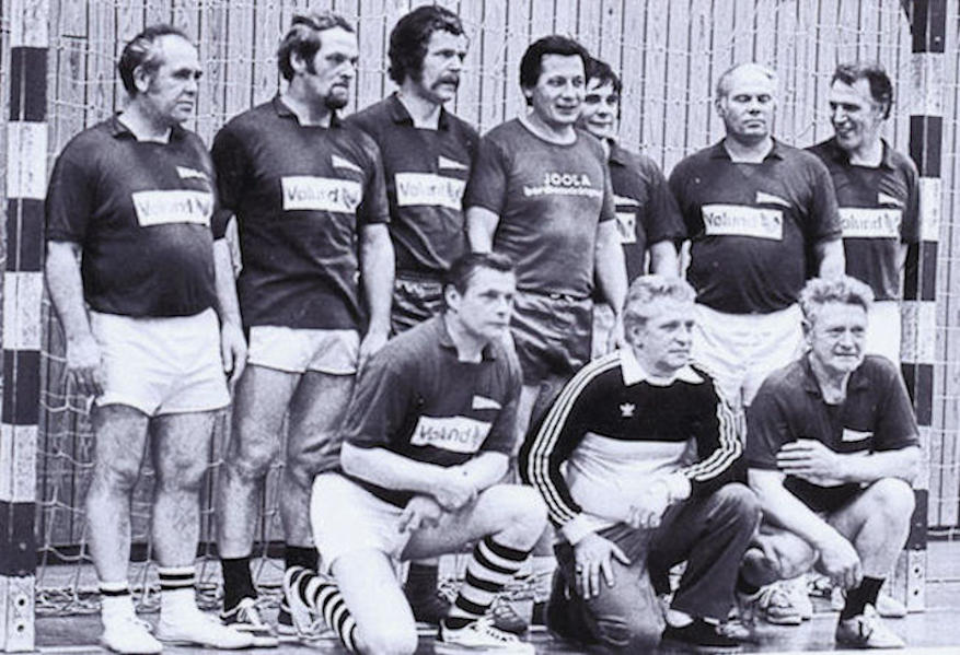 Frá dystinum í 1981: F.v: Torbjørn Mikkelsen, Poul Johannes Johansen, Nick Hansen og Bjarni Johansen. (Mynd Evald Larsen)