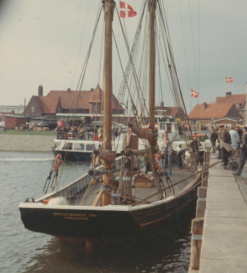 Westward Ho var bygd í Grimsby í 1884. Sluppin varð keypt til Føroya í 1895 og var heimahoyrandi á Tvøroyri. Sluppin fekk ikki motor fyrr enn í 1920, og tá sluppin kom til Havnar var eingin motorur í sluppini, men eftir nøkur ár settu menn motor í Westward Ho. Í løtuni stendur sluppin á sleipistøðini hjá Mest í Havn, har nakrir plankar vera skiftir. Myndirnar frá Danmarkarferðini fekk eg frá Høgna Krossteig. (Vagnur)
