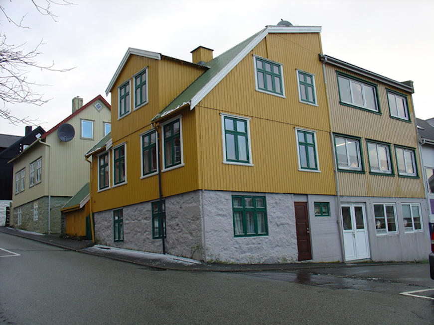 Húsini hjá Niels í Heiðunum og Miu. Seglvirkið var í niðaru hædd í í uppíbygninginum. Húsini hjá abba og ommu vóru nærmstu grannar niðaneftir. (Vagnur)