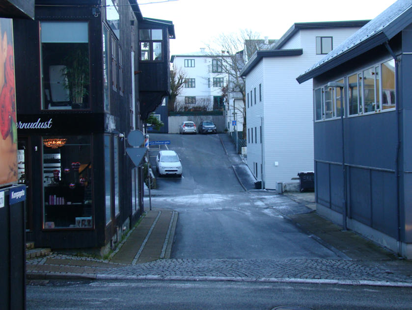 Bygging av háhúsi við parkeringskjallara og málið við Heysvegin var startskotið til Borgaraflokkin. Vandamikið er at koyra frá Kongagøtu út á Niels Finsensgøtu, tí tú skalt tvørtur um gongubreyt, har fólk koma tætt fram við húsum. (Mynd Vagnur)