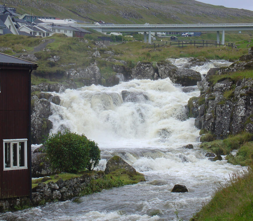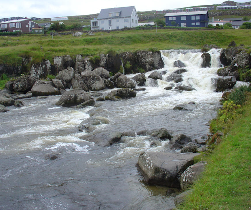 Minnist, at argabørn fóru um ánna stein av steini, har gráa húsið stendur. Men tá var sjálvandi ikki nógv vatn í ánni,. (Mynd Vagnur)