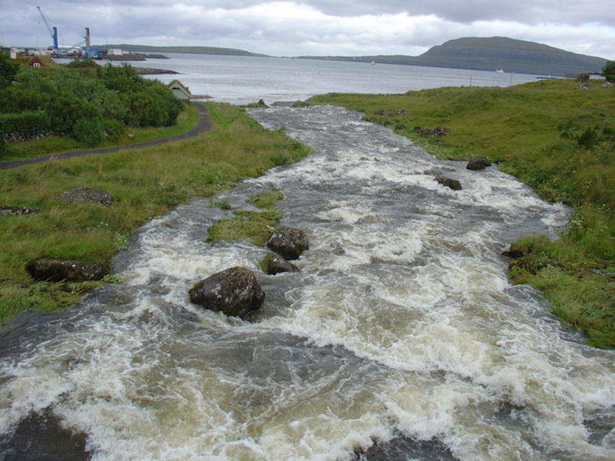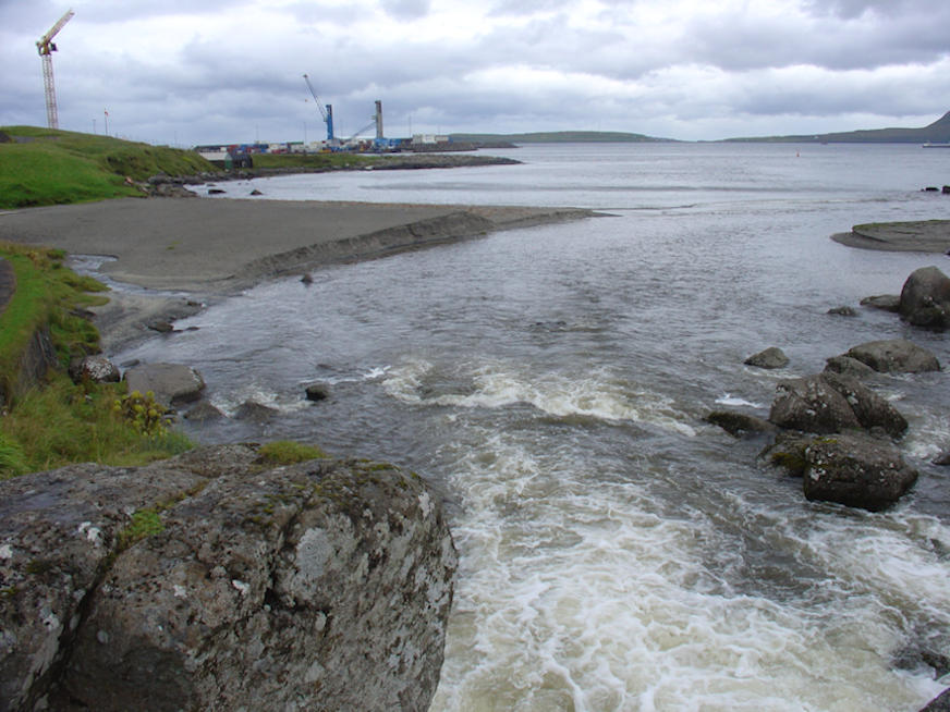 Hvørja ferð áarvøksturin er stórur, kemur so nógv vatn oman í Sandagerð, at sandur fer út á sjógv, og sandur fær nýtt skap. (Mynd Vagnur)