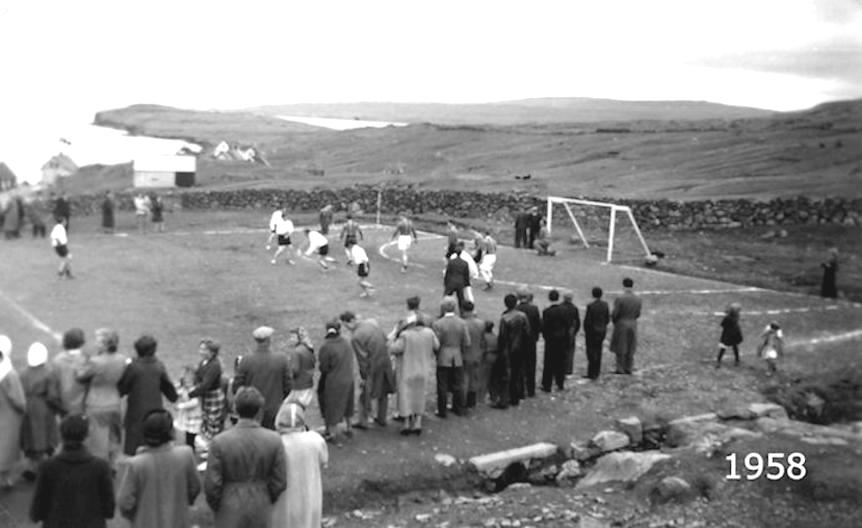 Grúsvallirnir vóru til tíðir ógvuliga slitnir og torførir at spæla á. Nógv góð minni á grúsvøllinum Strondum. (Mynd úr myndasavninum hjá Lassa Borðoy)