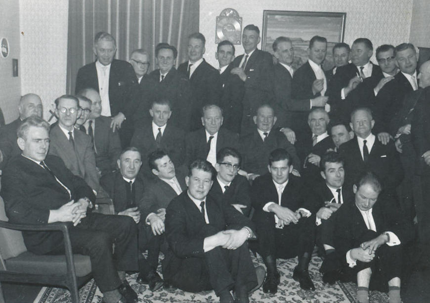 Mynd frá 1962 standandi fra vinstru: Kartni Winther (1914-2012, Niels Hallgrím Rein róptur Haggi ( 1911-1984), Trygvi Restorff (1920-2004), Arnold Ludvig (1915-1985), Einar Mikkelsen (1917-1999), Hans Johannes Clementsen (1917-1997), Debes Christiansen (1912-2000), Erling Christiansen (1920-1981), Sven Skarðhamar (1913-1996), Johannes Nicolajsen (1924-1983), Jóhan Petur Dam (1922-1991), Bogi Winther (1921-2007), Charles Bærentsen (1909-1983) og Torstein Askham, sum tíverri ikki er á myndin, men aðrari mynd í greinini.