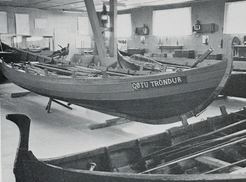 Gøtu Tróndur á Forminnissavninum. Báturin var við í kappróðri á Eysturvág í 1925. (Mynd bókin Drekin)
