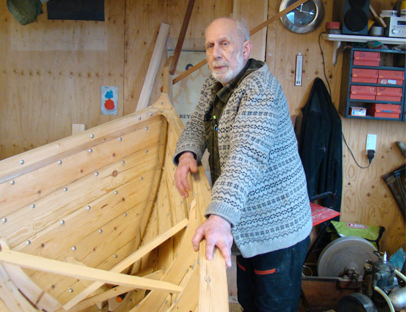 Bátasmiðurin Mikkjal Müller smíðar sær 4-mannafar heima