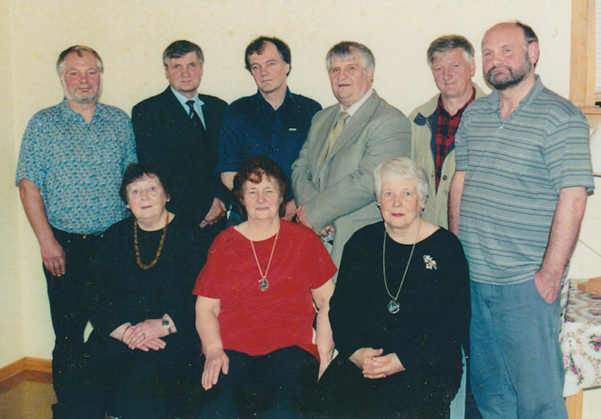 Kenni øll andlitini men bara nøkur nøvn. Frá vinstru Leon Andreassen (1945-2001), Dánjal Niclas Niclasen (1929-2010), nummar fimm Luddi Dam Jacobsen (1938-1986) og næst uttast Hans Petur Brekkstein (1926-2009) Teir leggja betongdekk á Havnará. Myndin frá umleið 1960, og onkur kann siga okkum, hvørjir hini menninir eru.