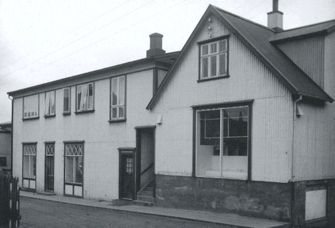 Soleiðis minnist eg Smæruna. Kjøthandil var í nærmasta húsinum og keypsmansvørur vóru í hinum húsinum. (Mynd Havnin – fólk og yrki)