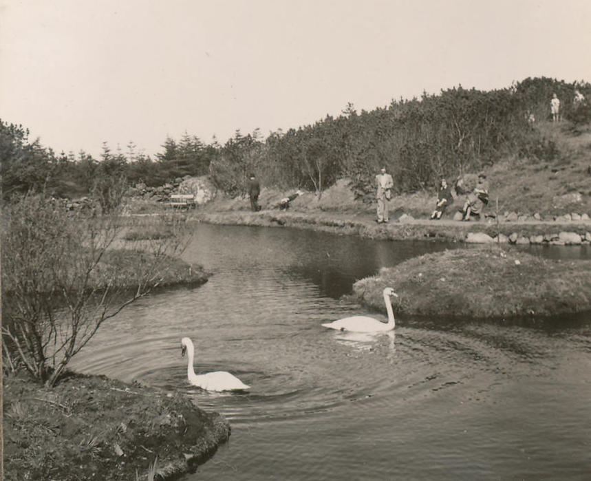 So er tað vakra listarverkið, sum Fridtjof Joensen gjørdi í 1983 úr rustfríum stáli við navninum Springvatn við dansandi børnum. Minnist, at fyrstu tíðina var vakurt springvatn, men listarverkið fekk ikki frið fyri ungdómi, sum í náttarlívinum gjørdu seg vátan undir vatnstrálunum. Tí verri blivu vatnstrálurnar burturbeindar, og nylon spent har, vatnstrálurnar áður vóru. Hetta fekk heldur ikki frið, tí ungdómar skóru burtur nylontræðrirnar.