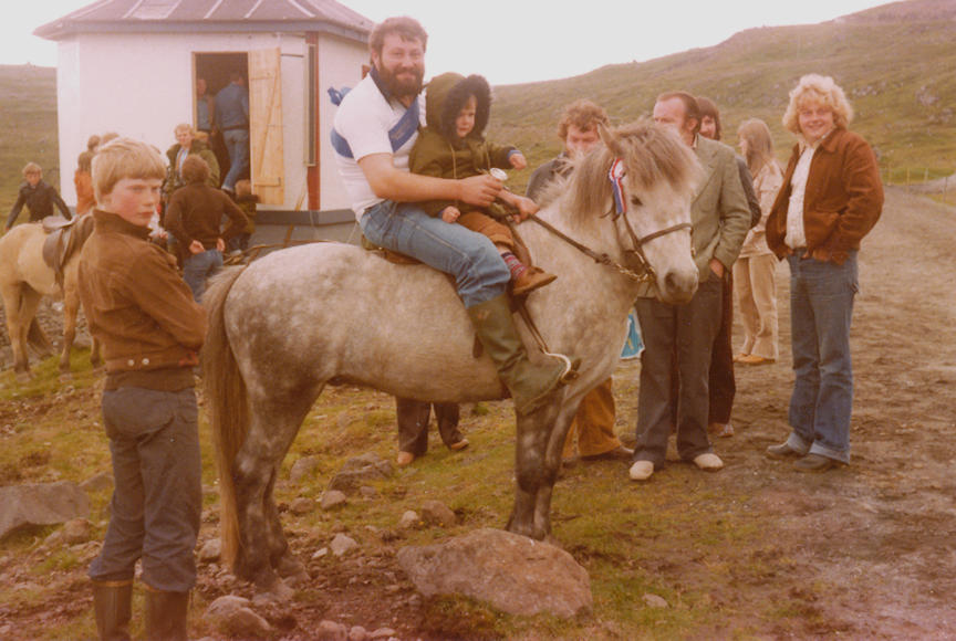 Leivur til kappríðing í Marknagili. Handan høvdið á rossinum síggjast eisini Júst og Janus bóndi. Leivur vann mangt heiðursmerki.