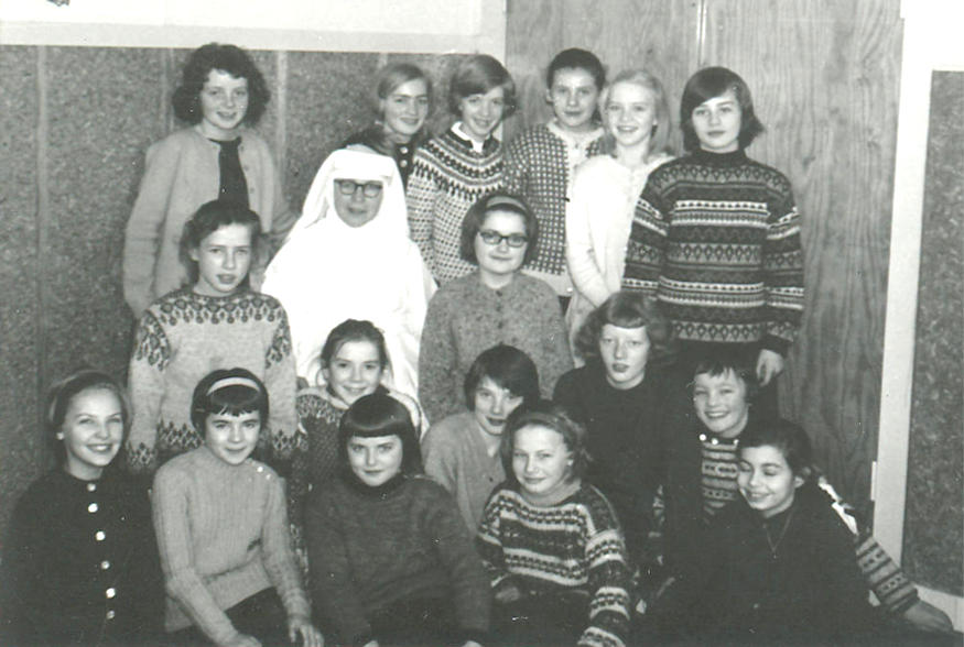 6. flokkur í Nonnuskúlanum 1964/65. Aftast frá vintru: Malena Enghamar, Minna Jacobsen, Tórun Andreasen, Svanna Hanusardóttir, Ása Poulsenog Jóhanna Debes. Í miðjuni frá vinstru: Asdrid Jacobsen, systi Maria og Rebekka Dragasund. Fremst frá vinstru: Britta Bendtsen, Súsanna Joensen, Martina Andreasen, Eydna Simonsen, Torgunn Thomsen, Sigun Lützen, Hildur Olsen, Laila Dam og Eva Kock