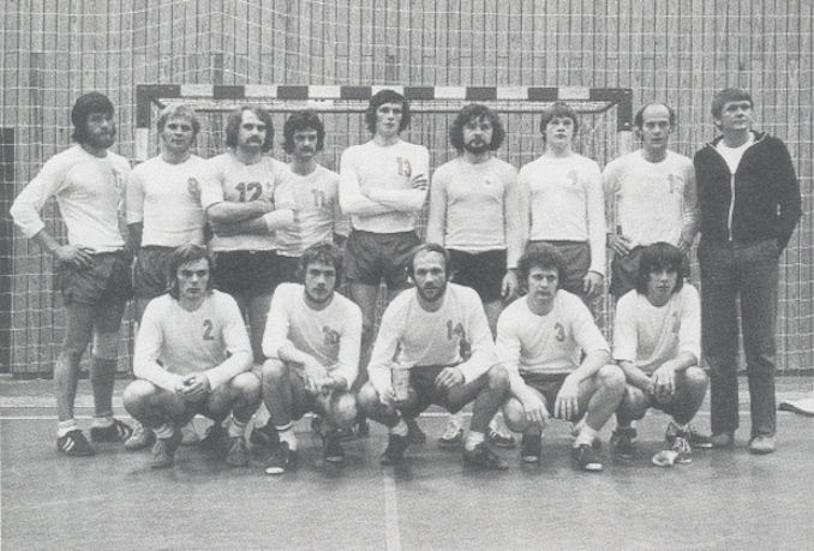 Hans Mortensen vandi føroyska manslandsliðið í 70-árunum, tá millum annað Føroyar í 1976 fingu góð úrslit í HM-kappingini í C bólkinum í Portugal. Føroyar tapti 21-20 fyri Sveits í hesi kapping. Fýra av spælarunum á myndini eru ikki millum okkum longur. Sigmund Reinert, sum doyði ungur, og Finnur Helmsdal, sum doyði av sjúku í 2008. Síðani eru seinni Sverri Jacobsen og Finn Bærentsen eisini farnir. Hans Mortensen legði stóran dent at fáa donsk 1. deildarlið at koma til Føroya at spæla ímóti føroyska landsliðnum. Kolding IF var eitt av liðunum. Í 1980 skipaði Føroyar fyri HM-kappingini í C-bólkinum, og tá spældu Norra, Portugal og Eysturíki eisini í C-bólkinum. Tann 6. februar 1980 tapti Føroyar 17-24 fyri Norra í høllini í Klaksvík. Í 2019 er Norra eitt av bestu liðunum í heiminum og spældi finaludyst ímóti dønum í seinastu HM-kapping. (Vagnur)