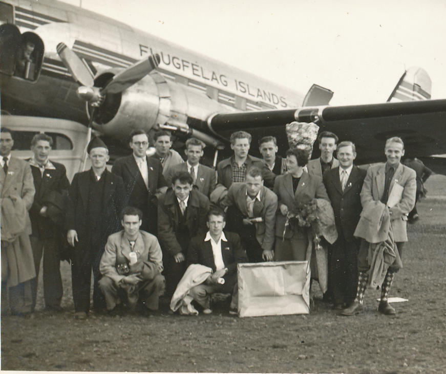 Flestu spælararnir høvdu ikki flogið áður. Stanandi f.v: Símun Poulsen, Heri Jensen, Venna Mortensen, Ólavur Lambaa, Jákup Luth, Kjartan Festirstein, Gunnleivur Hansen, Arnold (Alli) Hansen, Jona Jacobsen, Marius Johan Jensen, Heini Jacobsen og Mannbjørn Mortensen. Húkandi í miðjuni Jógvan Johansen og Eivind Dam. Fremst Bent Olsen og Petur Clementsen.