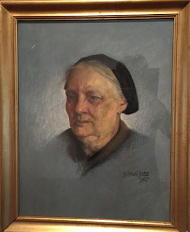 Kom herfyri fram á málning av langommu míni Annu Cathrinu Michelsen (í Dalólastovu), sum hongur í Listaskálanum. Á myndini er langomma mín 76 ára gomul. Eg kenni málningin, hann hevur hingið hjá einari ommudóttir hennara og latin listaskálanum, tá hendan doyði.