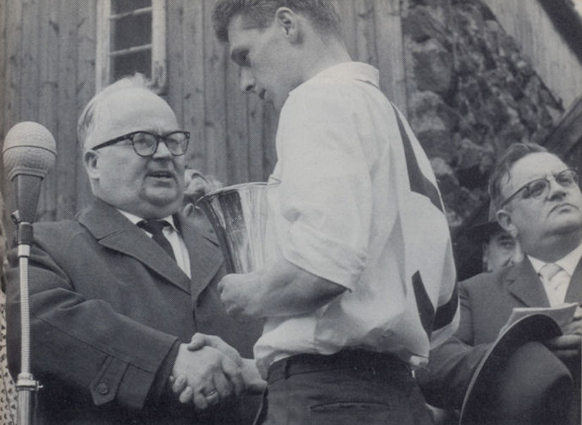 Ørvur 1966. Aftast frá vinstru Trygvi Bech, Einar Jacobsen, Jákup (á Lag) Jacobsen, Hjørleif Kürberg, Wilhelm Andreasen og Kristian Winthereig. Fremst frá vinstru: Zacharias Davidsen, Heðin Mortensen og Jóhan Carl Dam.