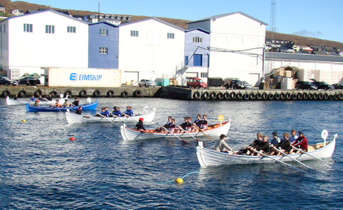 Neistagentur á Eiði í 1963: Standandi frá vinstru: Emmely Mikkelsen, Turid Hansen, Rannvá H. Jensen og Hildigunn Weihe. Húkandi f.v: Turið Debes Hentze, Helena Mortensen og Margit Hjalmarsdóttir.
