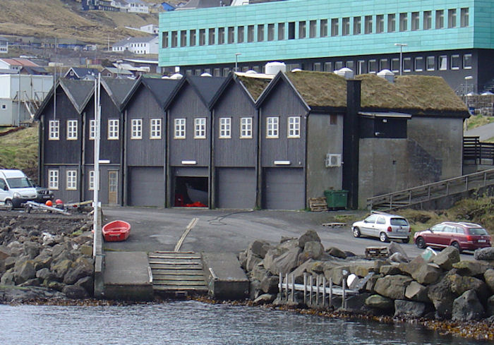 Fáur gevur sær far um, hví húsini hjá “radioamatørum” Yviri við Strond er bygd júst har. Vit síggja høgar antennur við húsini, og koyrir tú framvið um kvøldarnar, standa nógvir bilar har. Radioamatørarnir og Føroya Ellisakfør halda til í húsnum, men tað hava felagsskapirnir ikki altíð gjørt. Tað var í 1926, at Johannes í Stórustovu legði sær fiskapláss og bygdi sær goymsluhús Yvir við Strond, har hann keypti klippfisk sum umboð fyri sponsku fyritøkuna Truebay Pardo. Virksemið gekk heilt væl í nógv ár, men so broyttust politisku viðurskiftini í Spania, og í 1936 brast á borgarakríggj. Um hetta mundið var Føroya Fiskaexport stovnað, sum førdi til, at fiskavirkið hjá Johannes í Stórustovu mátti steingja. Johannes (1874-1941) var eitt skifti saman við Christian Holm Jacobsen og Zacharias Heinesen í felagnum p/f Nabb, sum hevði fiskapláss uppi á Hálsi. Á myndini, sum er tikin í 1955, síggja vit eisini Bukkvald, har alt órudd og óhumska var tveitt á sjógv. Í bókini Havnin – fólk og yrki stendur at lesa, at fiskaplássið Yvir við Strond er einasta fiskapláss frá farnari tíð, sum er eftir í Havn. (Vagnur)