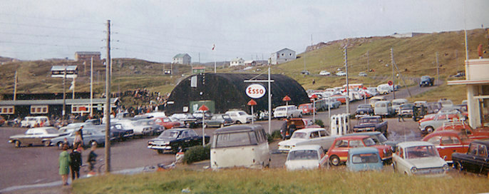 Haldi, at myndin omanfyri er góð. Myndin er frá 1967/68, tí vit síggja grundina stoypta til nýggju ítróttahøllina á Nabb, sum vit tá róptu økið. Minnist, at tað tók hálvtannað ár at byggja høllina, sum var tikin í nýtslu í desember mánað 1970. Nú hoyra vit, at ov fáir áskoðarar koma í Gundadal at hyggja at fótbólti, men vit síggja á myndini, at er ørgrynna av áskoðarum eru til dyst. Tá fór familja frá húsum at hyggja at fótbólti. Kanska øll ikki høvdu so stóran áhuga í sjálvum spælinum, men tey hittust í Gundadali til fótbólt og gott prát. Tá var einki sjónvarp, og liðini í bestu deildini vóru ikki meira enn fýra lið, sum spældu seks landskappingardystir, nú spæla liðini 27 dystir. Vit síggja nýggja neistahúsið frá 1964, B36 barakkina, sum kom úr Mjørkadali, og har eru eisini kyndilshúsið og gamla neistahúsið. Áhugavert at síggja ymsu bilsniðini, sum eg minnist øll væl. Ja, og elsteyrarnir, sum høvdu tað ringt í óveðri, har leidningar mangan slerdu saman ella lógu á vegnum, tá steyrarnir brotnaðu. Nú eru allir leidningar grivnir í vegirnar. Svarta barakkin var umvæld til dansistað í 1967, men longu í 1969 var barakkin niðurtikin, tí hon egnaði seg ikki til dansivirksemi. Húsini hjá Daniellu Olsen standa har enn, og tey mugu ikki takast burtur, fyrr enn Daniella er farin. Hon býr á Boðanesheiminum, og Daniella fyllir 104 ár 7. juni komandi. (Vagnur)