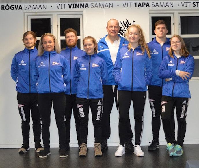 Hesi umboða Havnar róðrarfelag í DM í Danmark og EM-kappingini í París. Frá vinstru: Bergur Dam Jensen, Sarita K. Hansen, Róland Michelsen, Kristianna Skapheðinsdóttir, Toni Dam, Lea T. Johansen, Steinar W. á Tórgarði og Unnur á Tórgarði. Jens Kristian Dam vantar á myndini.