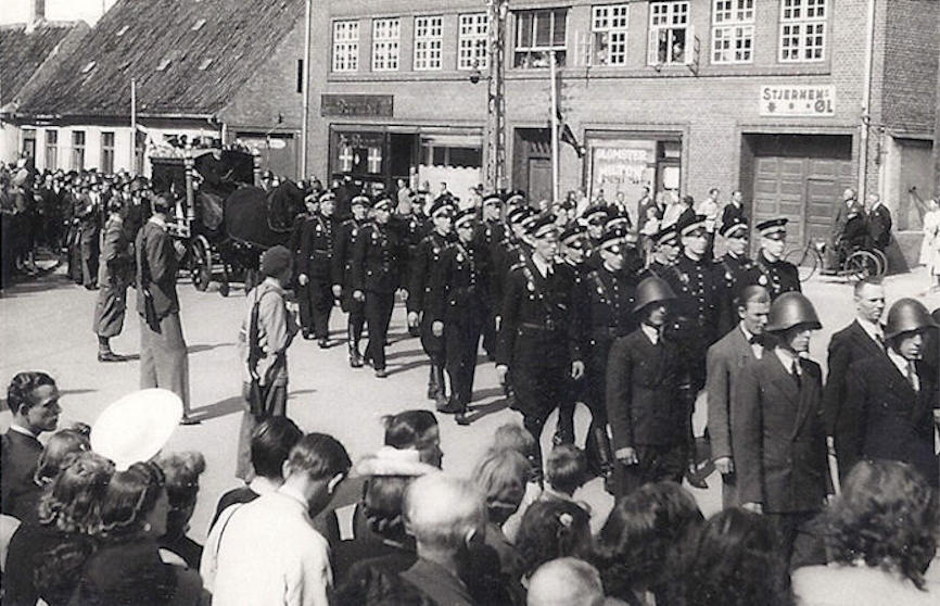 Næstovasta frá vinstru: Ásmundur Johannessen, venjari 9?, 10 Bjarni Johansen, 11 Johann Kjeld, 12 Kaj Aage Troest, 13, Heri Mørkere, 14 Kári Slættanes, 15?, 16 Ímund Hansen.