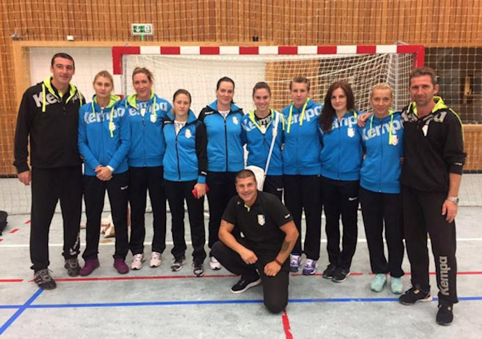 Sjáldsom mynd av rumenska liðnum. Bara seks útispælarar og tveir málverjar á ferðini í Føroyum. (Mynd heimasíðan hjá CSM Ploiesti)