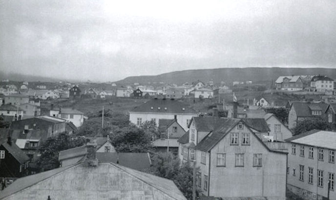 Myndin omanfyri er áhugaver fyri okkum, sum minnast økið við Jóannesar Paturssonargøtu júst um hetta mundið. Serliga eitt hús stendur upp við “Kaggan”, sum mátti lúta, tá Tórsgøta var kvett av, og Varðagøta og Dalavegur vóru bundnir saman frá Køkubúðini og niðan í Dalavegin við Kaggan. Minnist, at Ólavur Lambaa við familju búðu eitt skifti í húsunum. Minnist eisini, at tveir dreingir um aldur við meg búðu í húsunum, har Kaggin seinni kom at halda til. Dreingirnir vóru uppvaksnir hjá ommuni og abbanum, og serliga andlitið á ommuni síggi eg fyri mær, men minnist ikki navnið. Annar drongur haldi eg æt Hans Heri. Húsið niðast uttast til høgru er áhugavert, tí har helt kenda dansihølið Tórshøll til. Tað vóru Zacharias hjá Bøkjaranum og Sofus Mortensen, sum vóru timburmeistarar, sum bygdu húsini í 1917, har teir høvdu timurhandil og verkstað. Húsini vóru seld øðrum í 1928. (Vagnur)