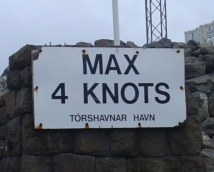 Hetta skeltið hekk einaferð á Molanum, men er tikið niður. Hvør skal siga: Siglið so skjótt tit vilja á Havnarvág. Kundi hugsað mær at fingið at vita, hví skeltið er tikið niður. (Mynd Vagnur)