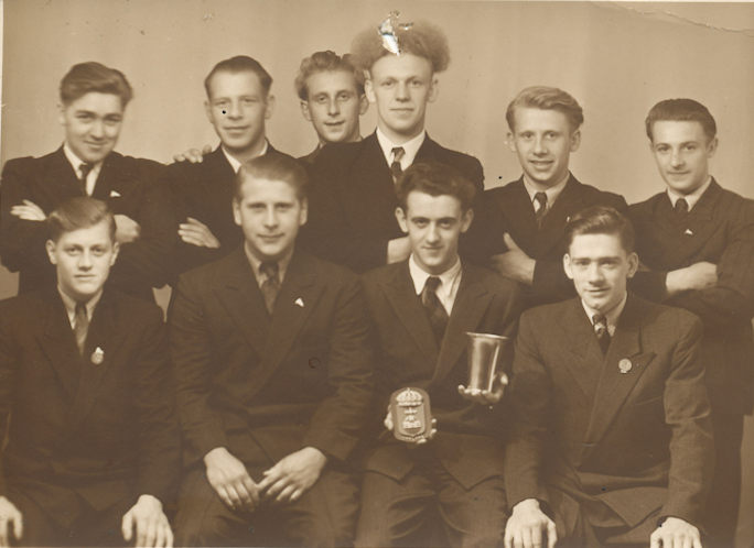 Felagsmynd av meistarunum niðan fyri Skansaveg