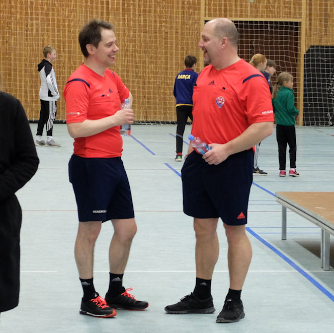 Heri Petersen og Hannis Wardum hava júst dømt seinna FM-finaludystin millum Neistan og Kyndil. (Mynd Vagnur)