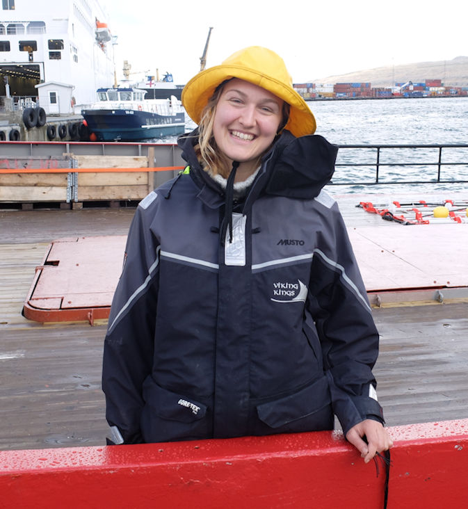 Hósdagin kom eg fram við á Bursatanga, har hjálparskipið hjá norska víkingaskipinum Draken Harald Hårfagre lå. Á dekkinum umborð á Vikingfjord stóð 22 ára gamla Suzanne Arnesen við nakrar bjargingarbátar, sum hoyrdu til víkingaskipið. Ikki visti eg tá, at skipið Vikingfjord, sum lá við bryggju har, var hjálparskip hjá víkingaskipinum og skal fylgja Draken fyrst til Íslands, síðani til Grønlands og til Amerika, har víkingaskipið skal vera við í stórari regattatiltaki. Ungi norski matrósurin var fyrikomandi og segði mær millum annað, hvussu fegin hon er um, at hon var ein av teimum 4000 fólkunum, sum søktu um at sleppa við víkingaskipinum hesa longu ferðina. Og eg slapp við, segði hon við smíli og heldur fram: Læs resten