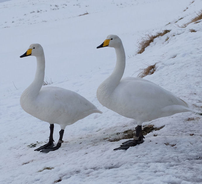 Tá eg sunnudagin var í Kollafirði í sambandi við nýggja 5-mannafarið Teistan, gingu tveir vakrir hvítir svanir niðanfyri vegin í Líðini. Spakir og forvitnir vóru teir og ikki ræddir, tá eg tók mynd av teimum. Eg veit, at svanir leggja leiðina til Føroya áveigis til Íslands, og í Mjávuvøtnum eru nógvir svanir at síggja ymsar tíðir á árinum. Tvær ungar kvinnur hitti eg á bygdarvegnum, og tær søgdu mær, at maðurin í húsunum omanfyri vegin gav teimum mat. Svanirnir høvdu báðir ring um annað beinið. Læs resten